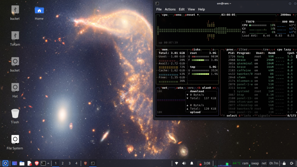 Om OS is an operating system compiled according to my practical needs. One of the advantages of the linux system is the incredible versatility of its code, which allows the operating system to be modified and compiled to suit the project. This is why the Internet is full of ‘flavours’ of linux, and it is rightly one of the goals of open source. Creating project-tailored code is much more effective than having to adapt a project to the proprietary code provided by companies mainly focused on generating financial profit.